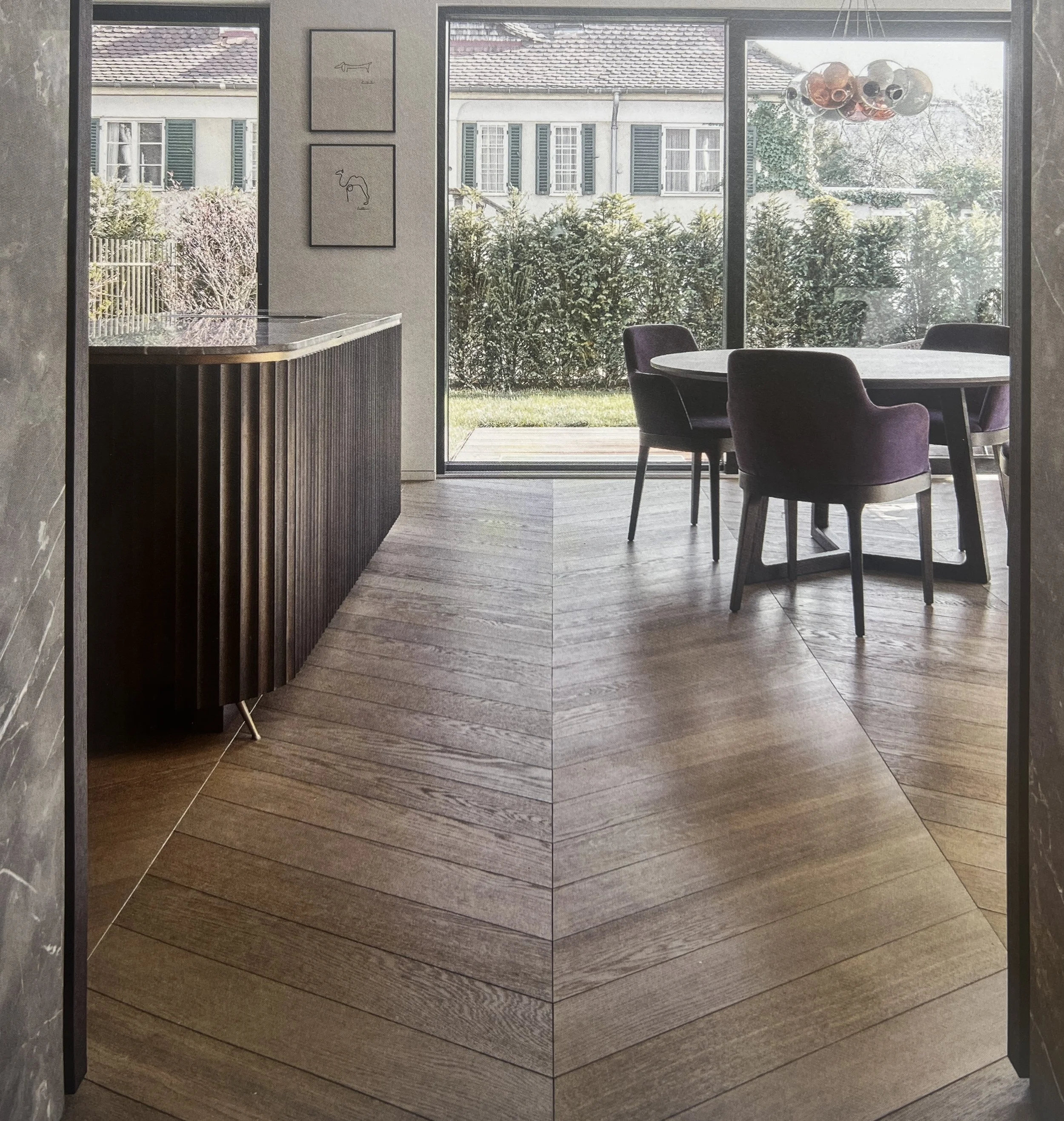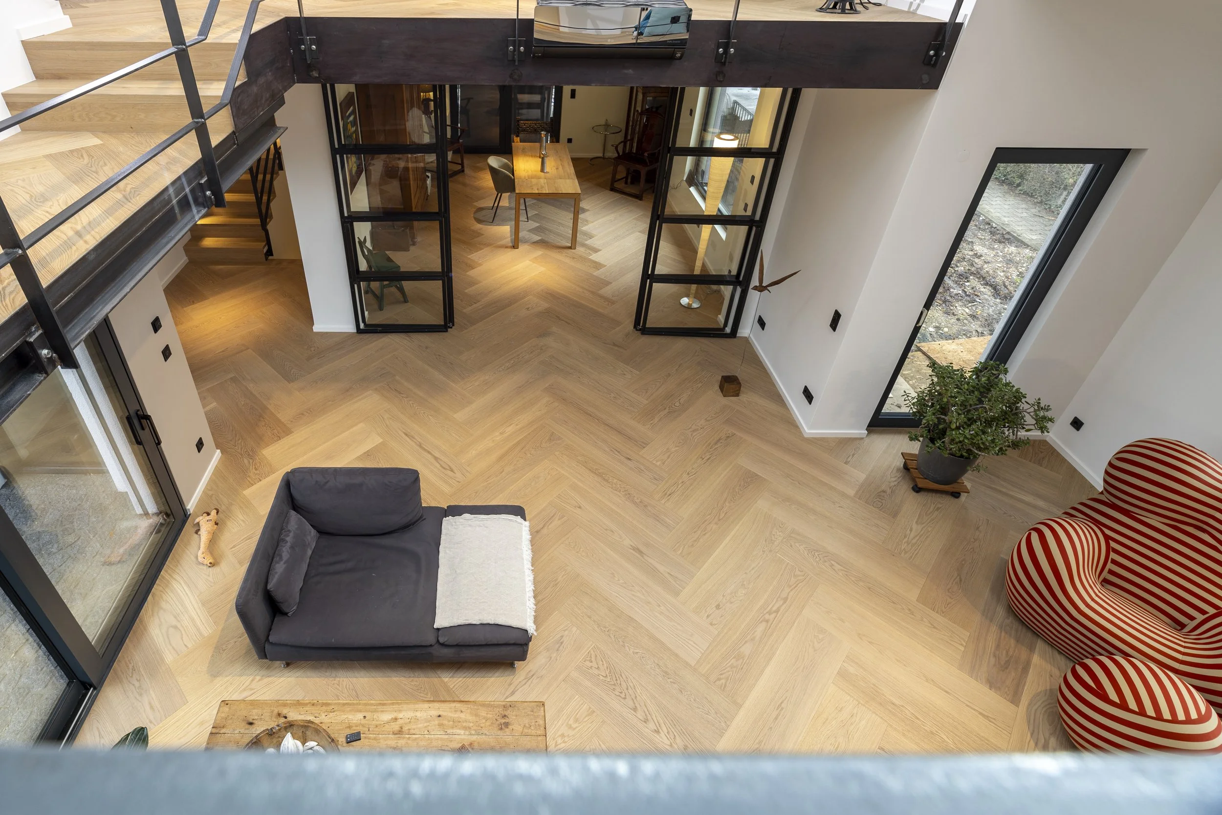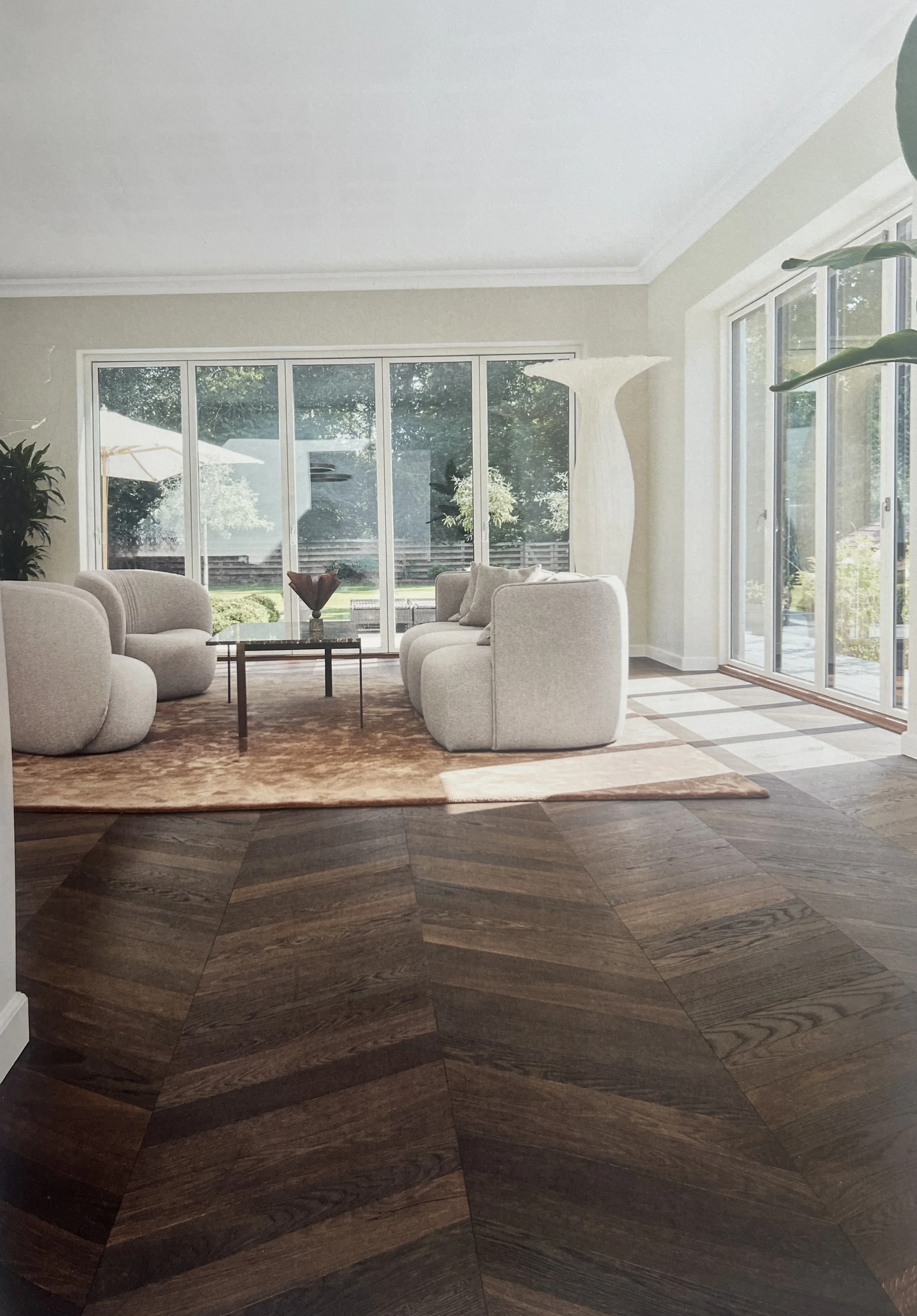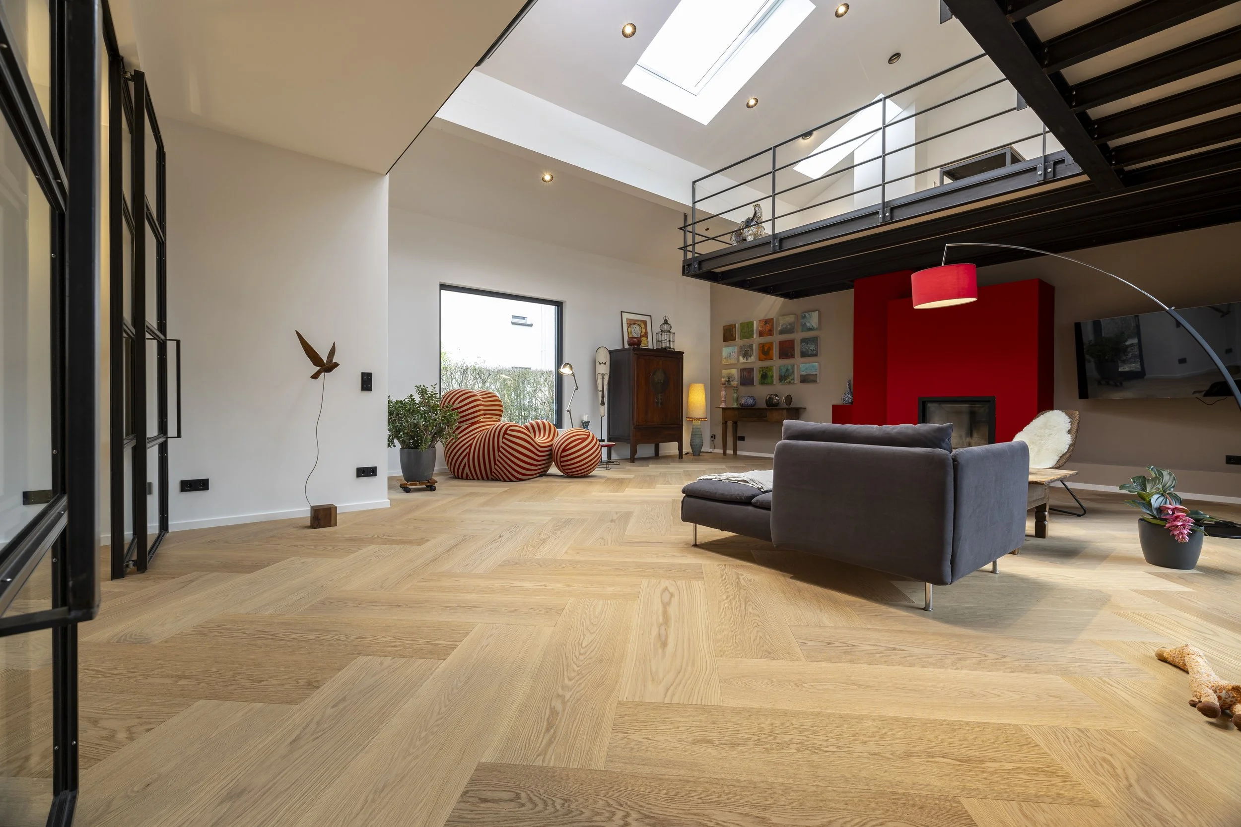 Adler Parkett offers a stunning range of herringbone and chevron parquet flooring that elevate interiors with their natural warmth and authentic wood textures, combining timeless elegance with modern craftsmanship. Crafted from high-quality woods like oak and walnut, among many others, these multi-layer parquet floors are designed for durability, sustainability, and aesthetic versatility, creating the perfect luxurious European aesthetic for both residential and commercial spaces.
