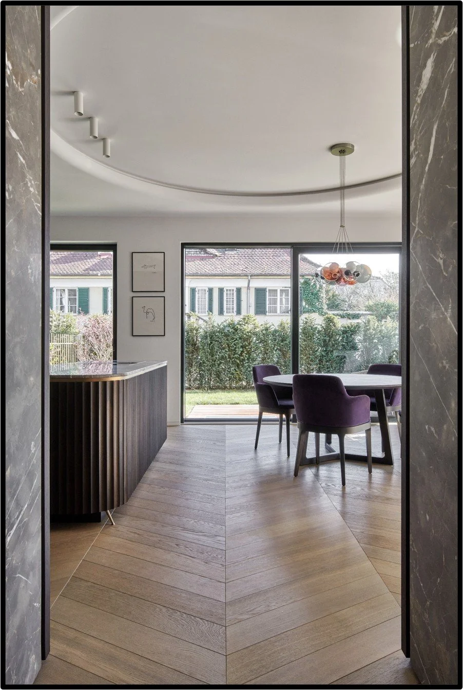 Choose from various surface structures and exquisite custom-created finishes to match your style. Elevate your design with classic herringbone or sophisticated chevron patterns, crafted at several available angles, lengths and widths. Design your own flooring pattern or elements to create a unique masterpiece that reflects your vision.